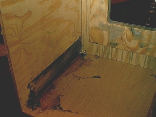 The picture on the right shows the inner lid in place. Two inches of rigid styrofoam go above this to give 3+ inches all around. More would be better, but space limitations will not allow more. The box is to occupy a portion of the berth abaft of the galley sink, if you are familiar with the layout of the older Westerly designs. The side of the icebox, therefore, will become a back rest for the chart table.